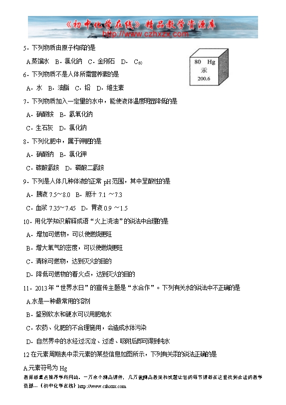 所属专辑: 《2013年各省市中考化学真题》专辑