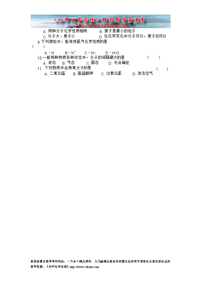 - 下一份试卷:鲁教版初中化学1-3单元复习专题五水的净化