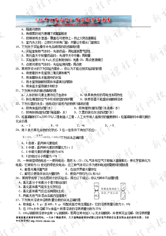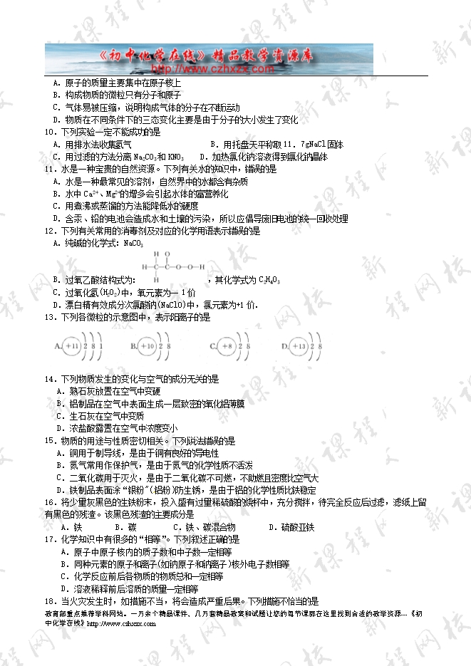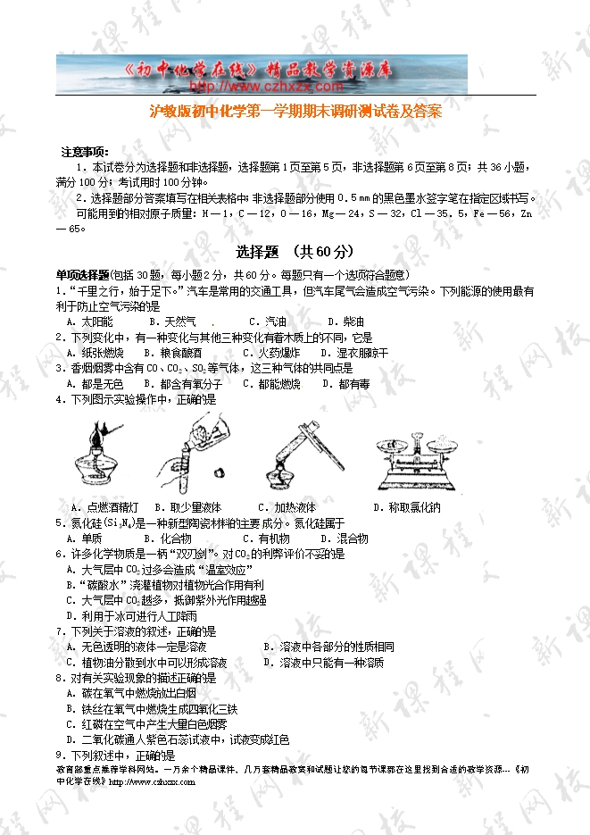 - 下一份试卷:沪教版初中化学第一学期期末考试化学试题及答案