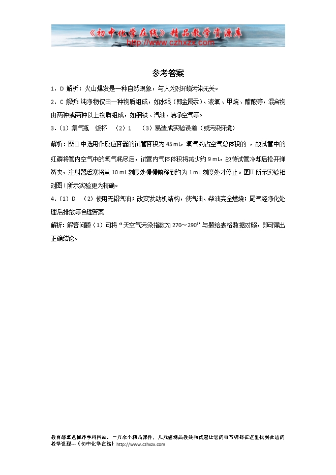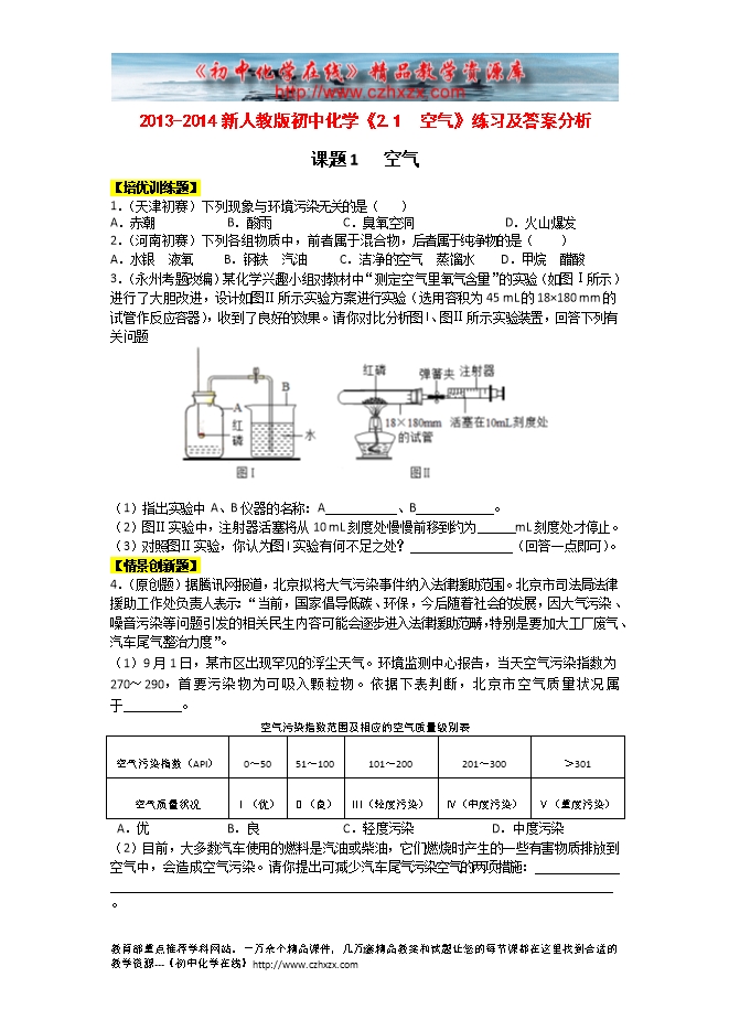 2013-2014新人教版初中化学《2.1 空气》练习及答案分析
