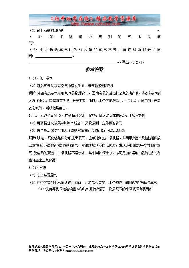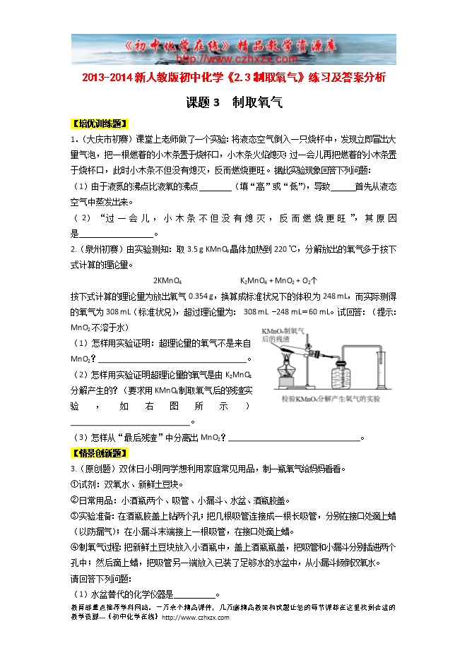 2013-2014新人教版初中化学《2.3制取氧气》练习及答案分析
