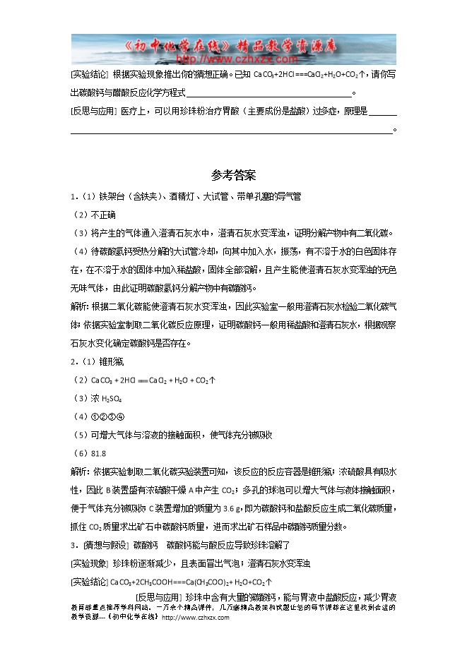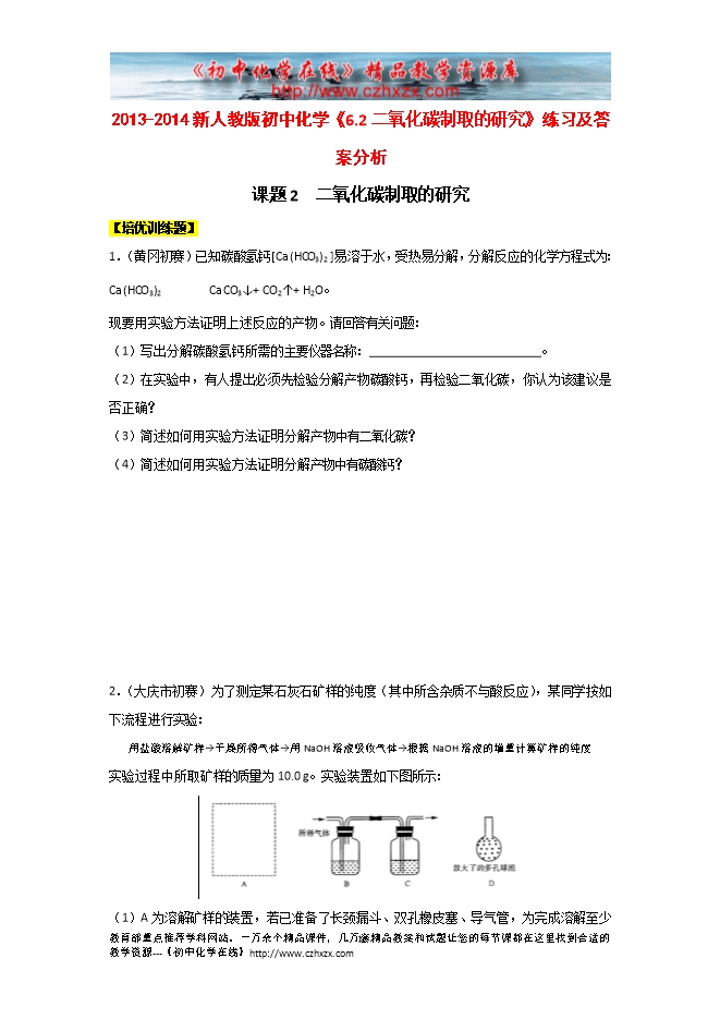 2013-2014新人教版初中化学《6.2二氧化碳制取的研究》练习及答案分析