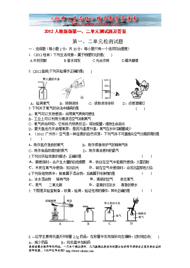 2012人教版版第一、二单元测试题及答案
