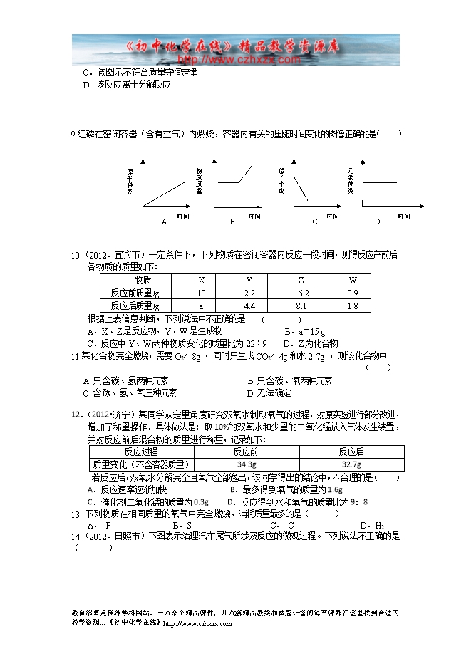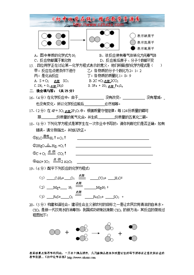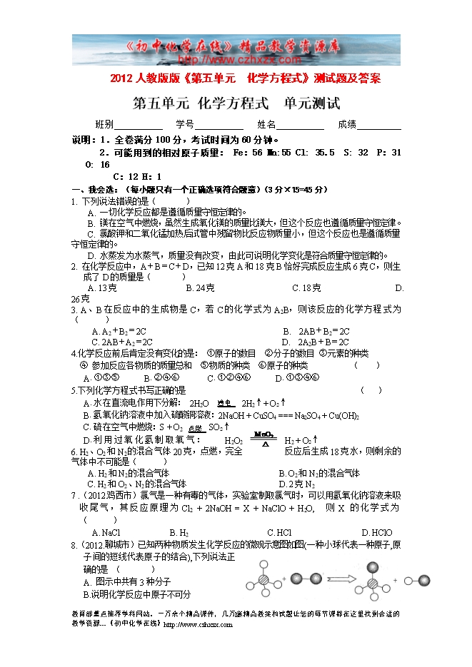 2012人教版版《第五单元 化学方程式》测试题及答案