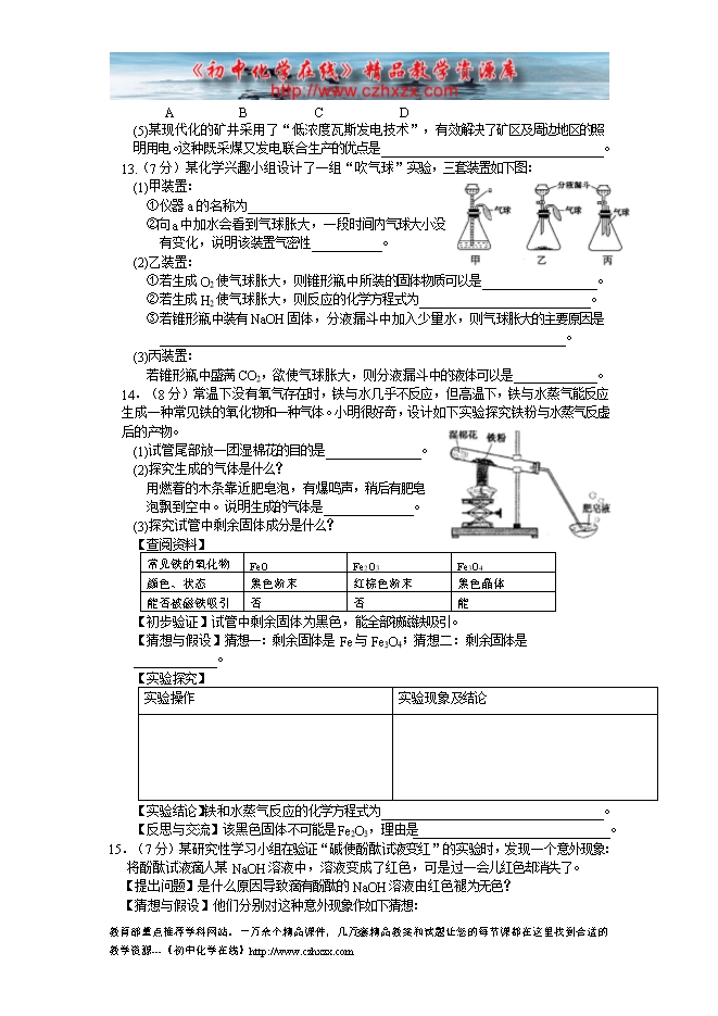 2014年安徽省中考化学试题(word版)