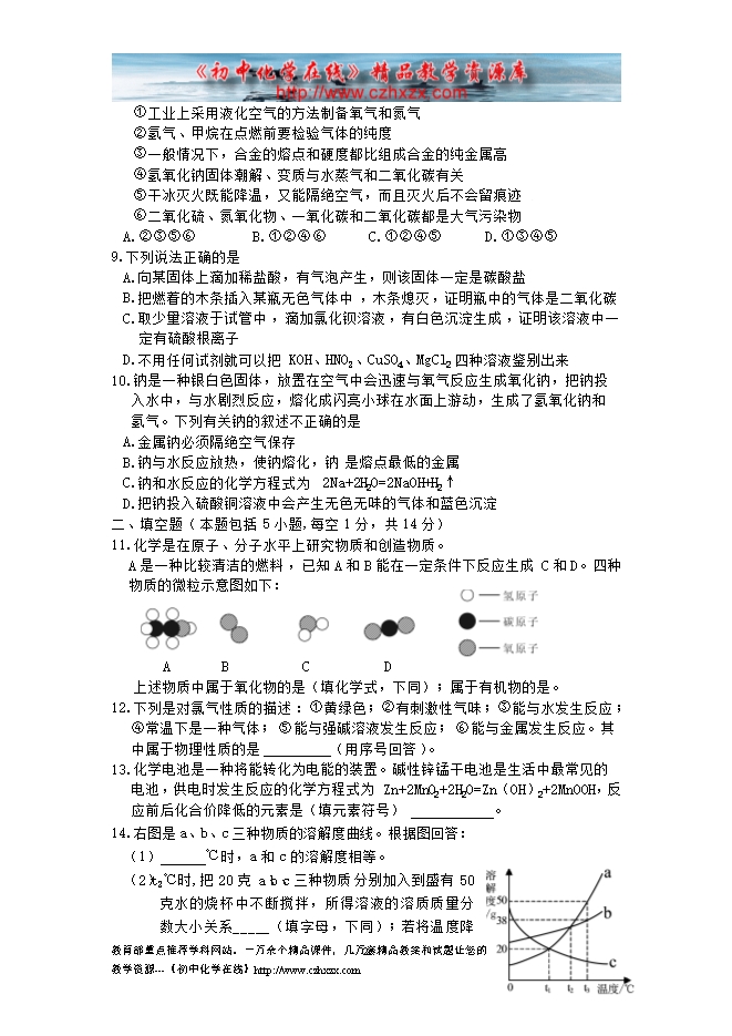 - 上一份试卷:2014年安徽省中考化学试题(word版)