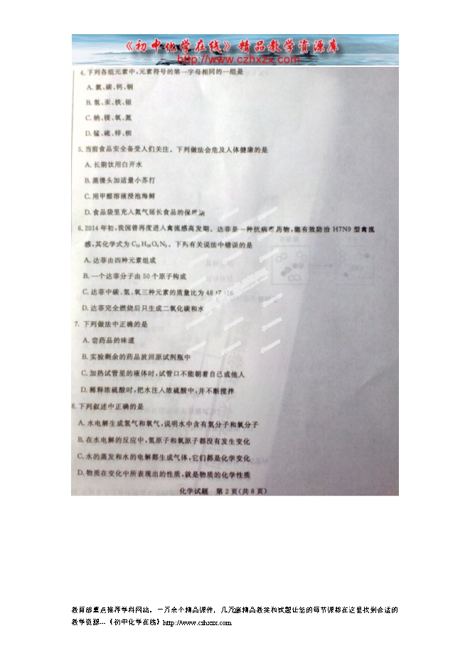 - 下一份试卷:2014年山东省东营市中考化学试题及答案(word版)