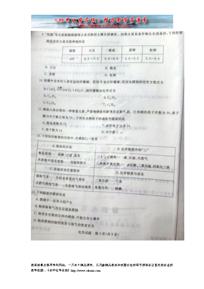 2014年山东省滨州市中考化学试题及答案(扫描版)