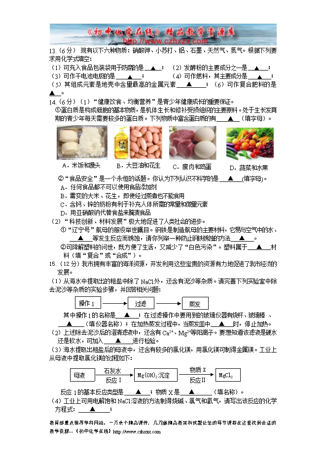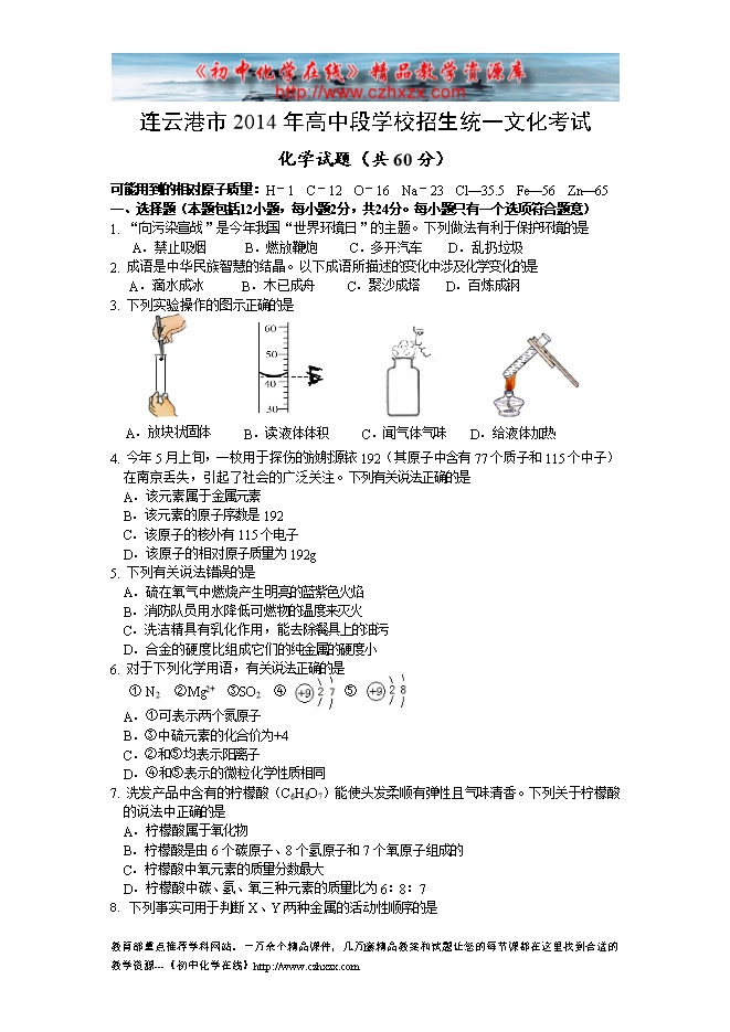 2014年江苏省连云港市中考化学试题及答案(word版)