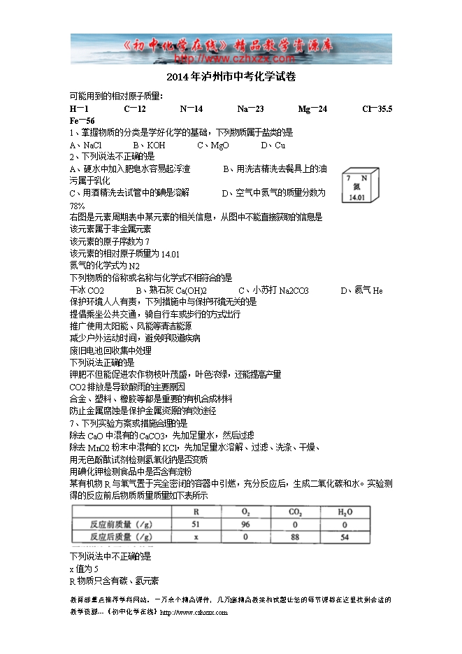 所属专辑: 《2014年各省市中考化学真题》专辑