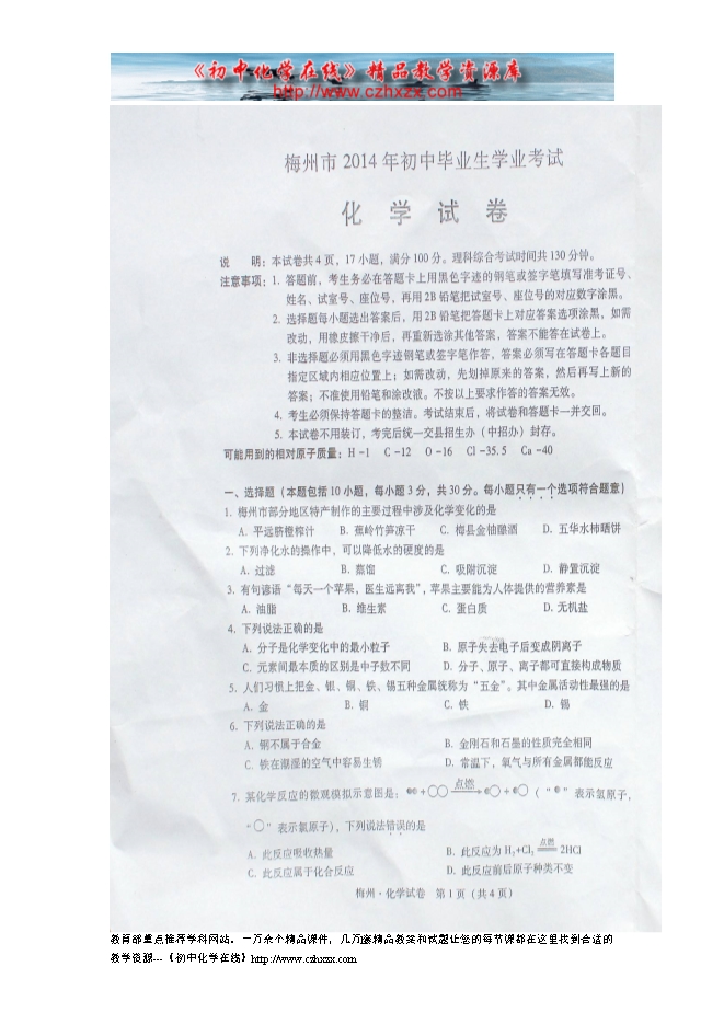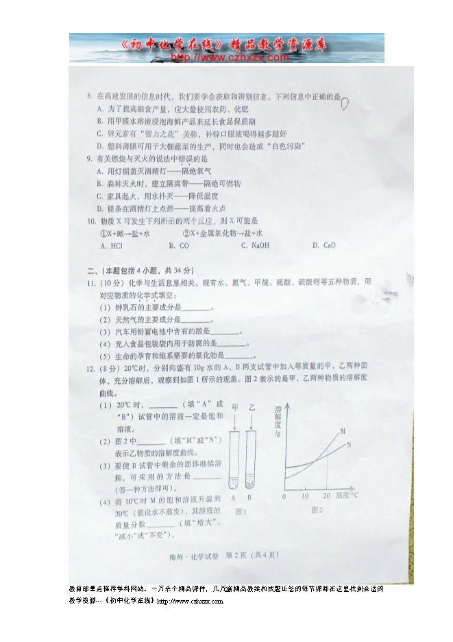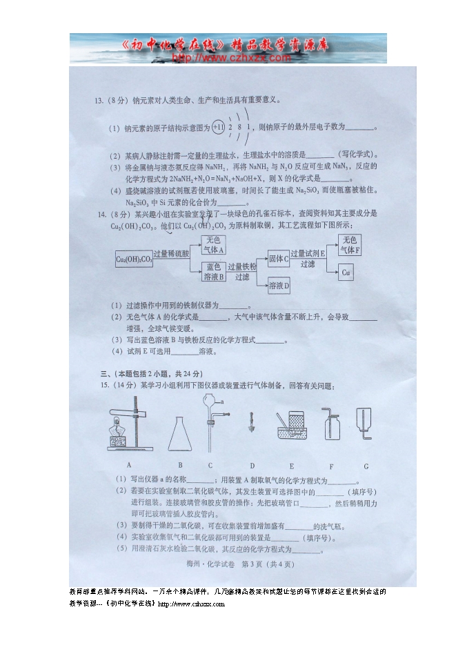 - 下一份试卷:2014年贵州省遵义市中考化学试题及答案(扫描版)