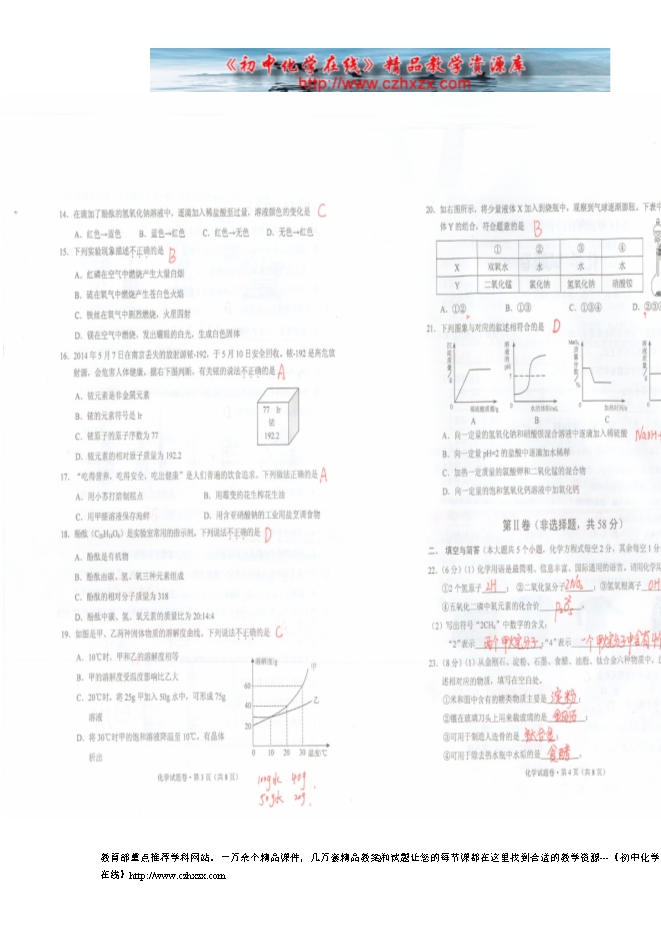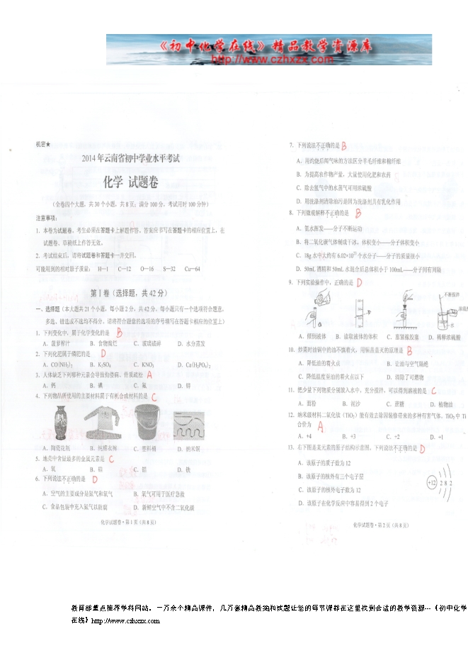- 下一份试卷:2014年江西省南昌市中考化学试题及答案(扫描版)