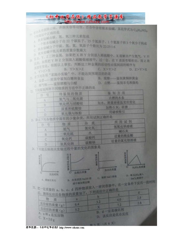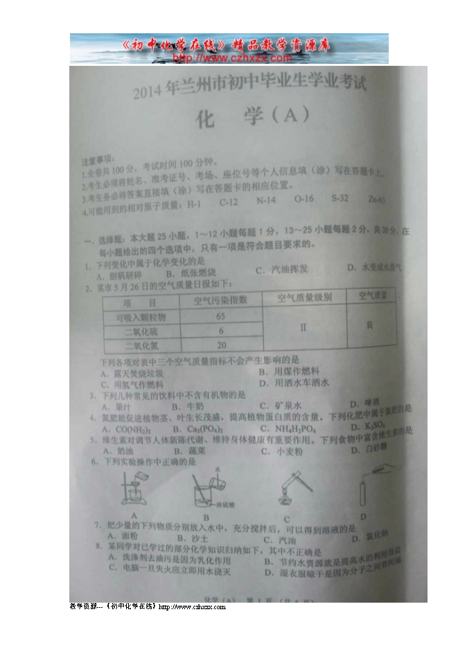 2014年甘肃省兰州市中考化学试题及答案(扫描版)