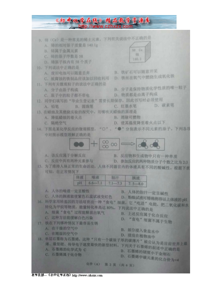 - 下一份试卷:2014年甘肃省白银市中考化学试题及答案(扫描版)