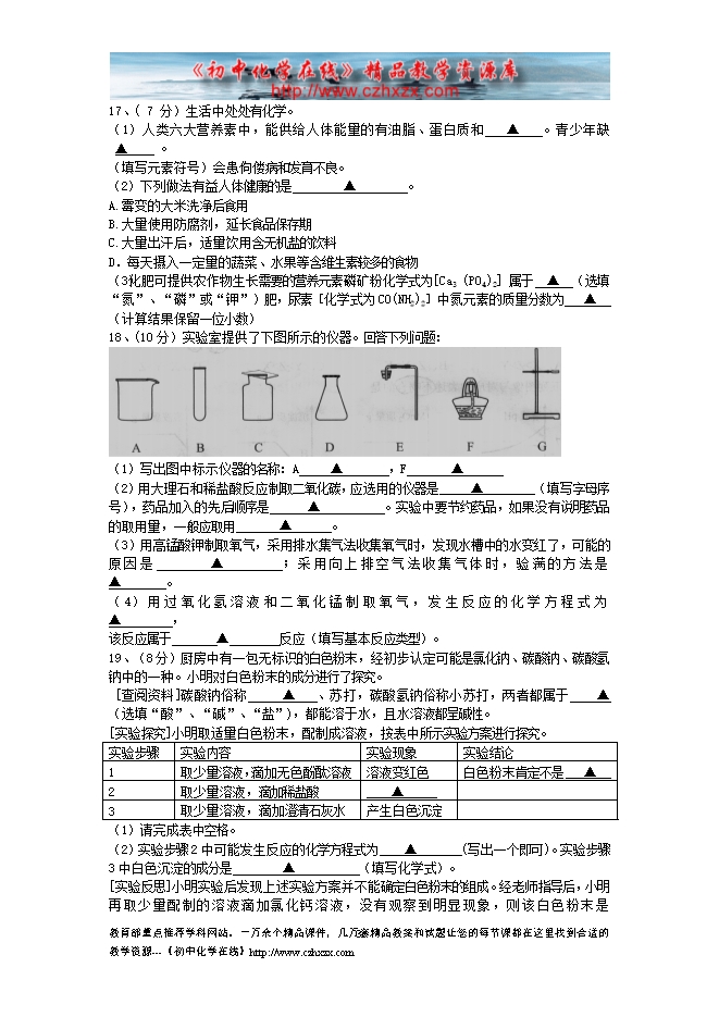 - 下一份试卷:2014年江苏省苏州市中考化学试题及答案(word版)