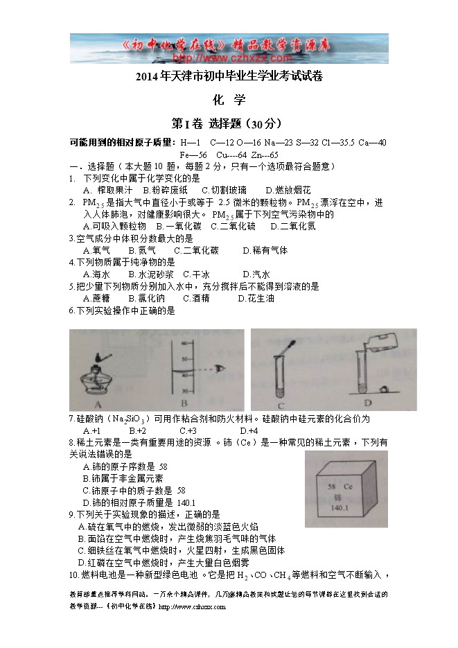 - 上一份试卷:2014年上海市中考化学试题及答案(word版)