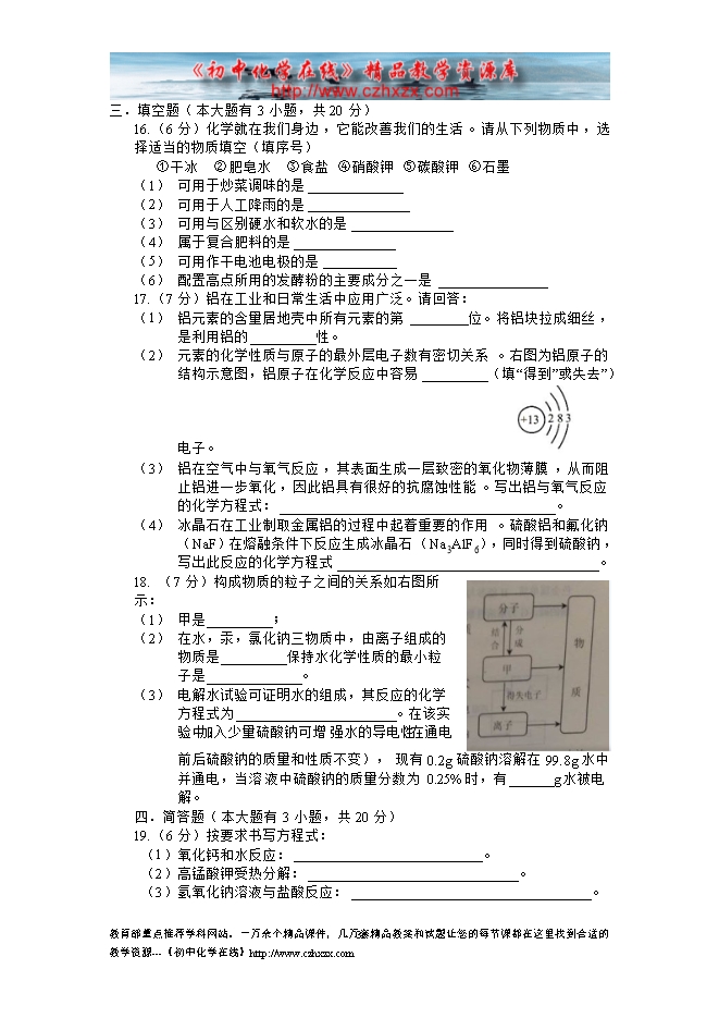 - 下一份试卷:2014年辽宁省抚顺市中考化学试题及答案(扫描版)