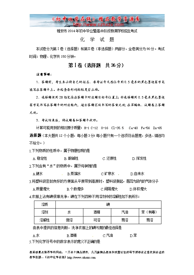 - 下一份试卷:2014年四川省南充市中考化学试题(扫描版)