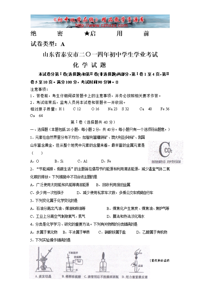 2014年山东省泰安市中考化学试题及答案(word版)