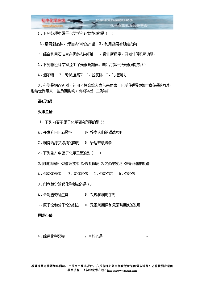 - 下一份试卷:人教版《第一单元课题2 化学是一门以实验为基础的科学》检测题及答案分析