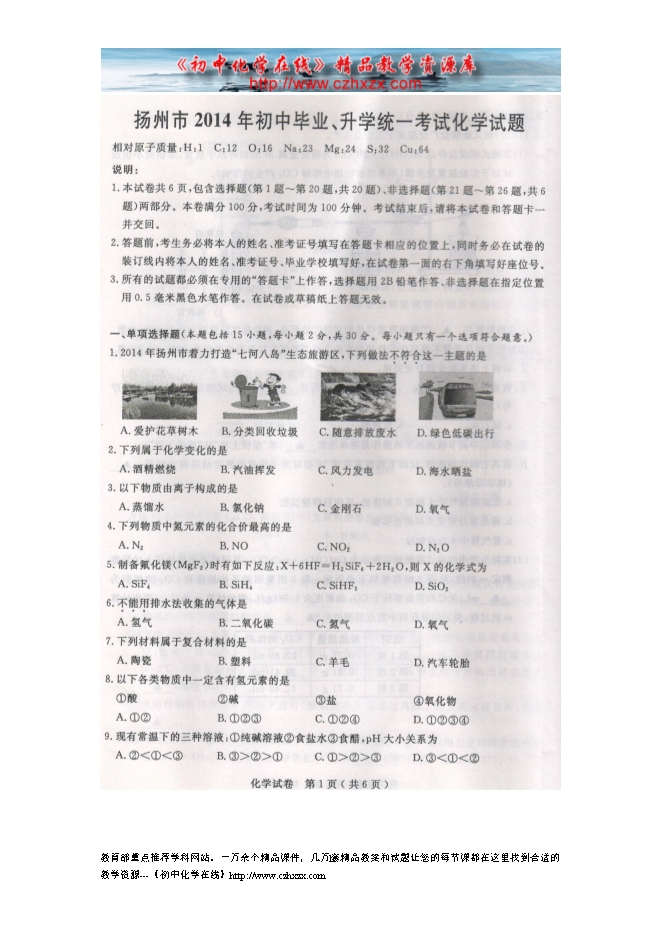 所属专辑: 《2014年各省市中考化学真题》专辑