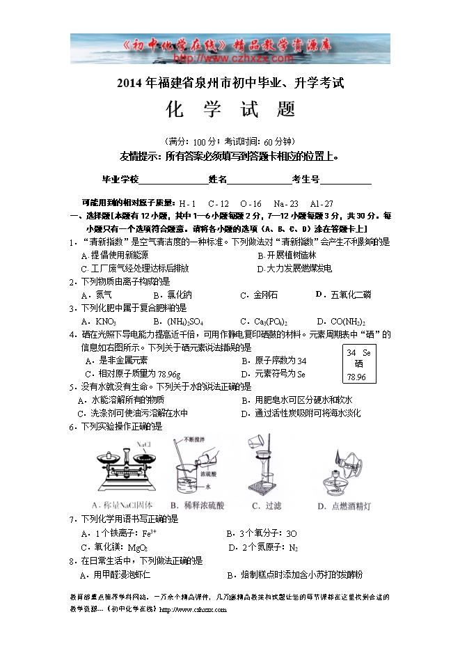 - 下一份试卷:2014年甘肃省定西市中考化学试题(扫描版)
