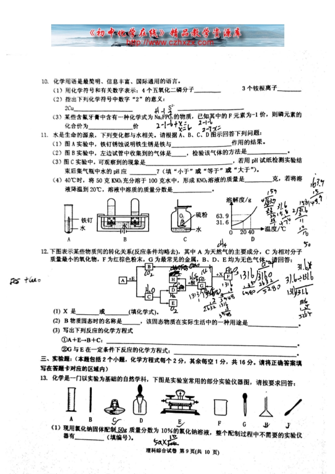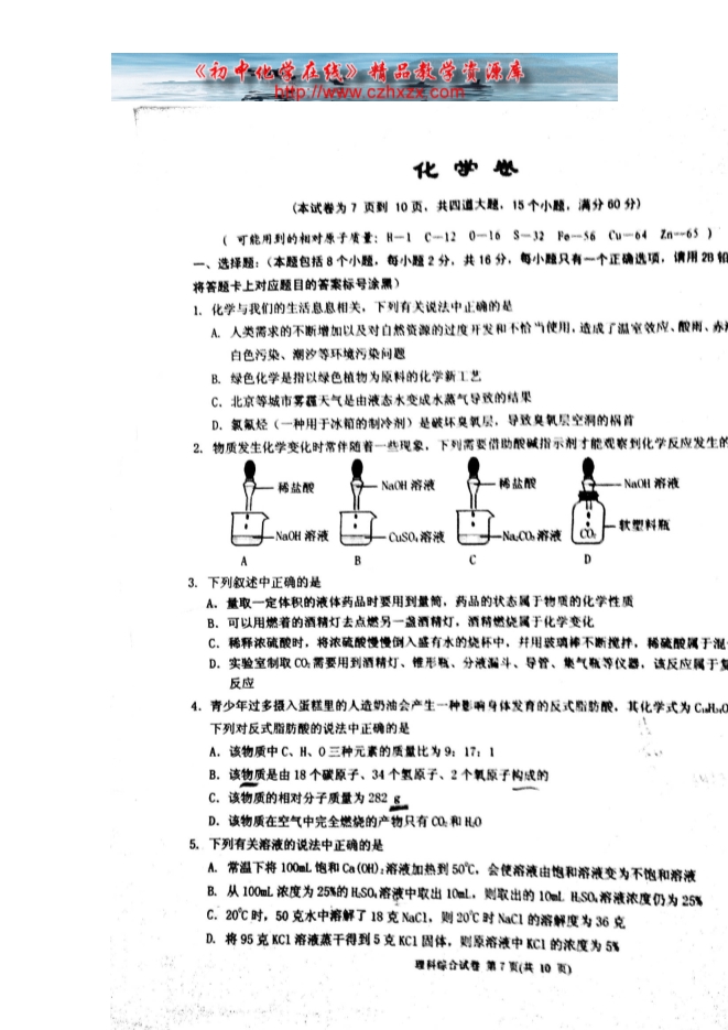 - 下一份试卷:2014年湖南省益阳市中考化学试题(扫描版)