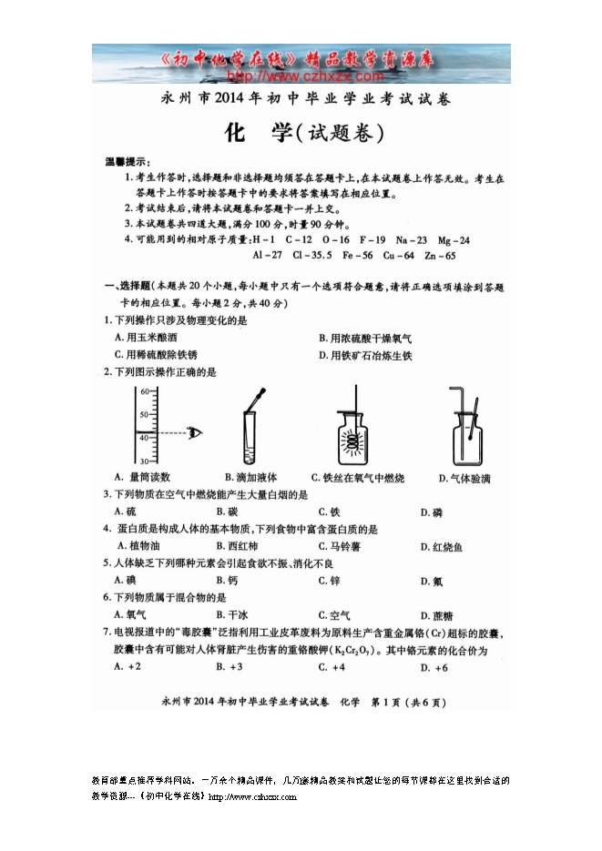 - 下一份试卷:2014年湖南省株州市中考化学试题及答案(word版)