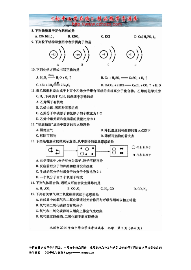 - 上一份试卷:2014年湖南省益阳市中考化学试题(扫描版)