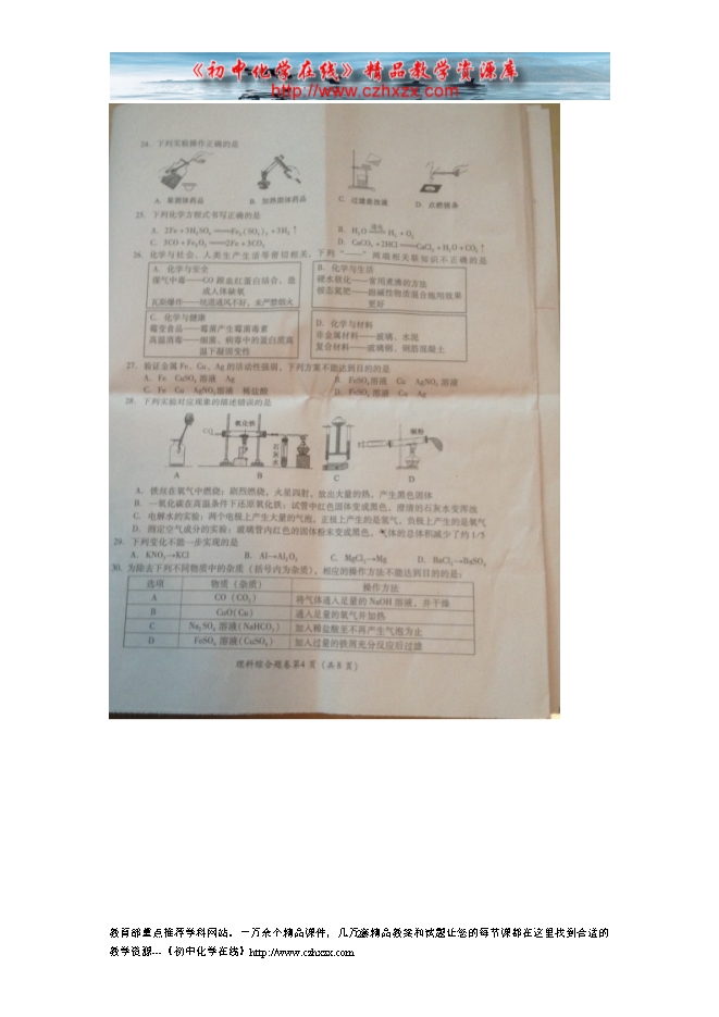 2014年四川省巴中市中考化学试题及答案(扫描版)