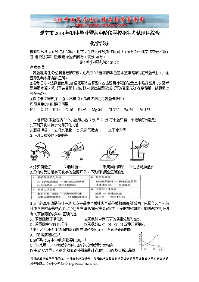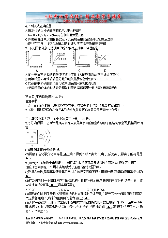 2014年四川省遂宁市中考化学试题(word版)