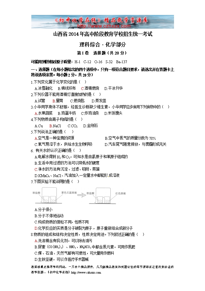 所属专辑: 《2014年各省市中考化学真题》专辑