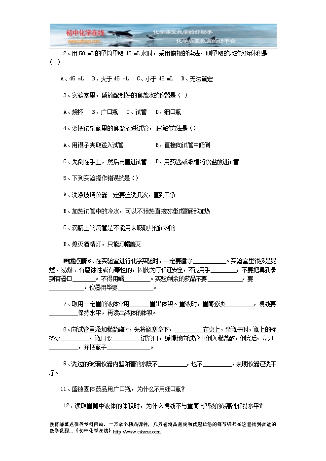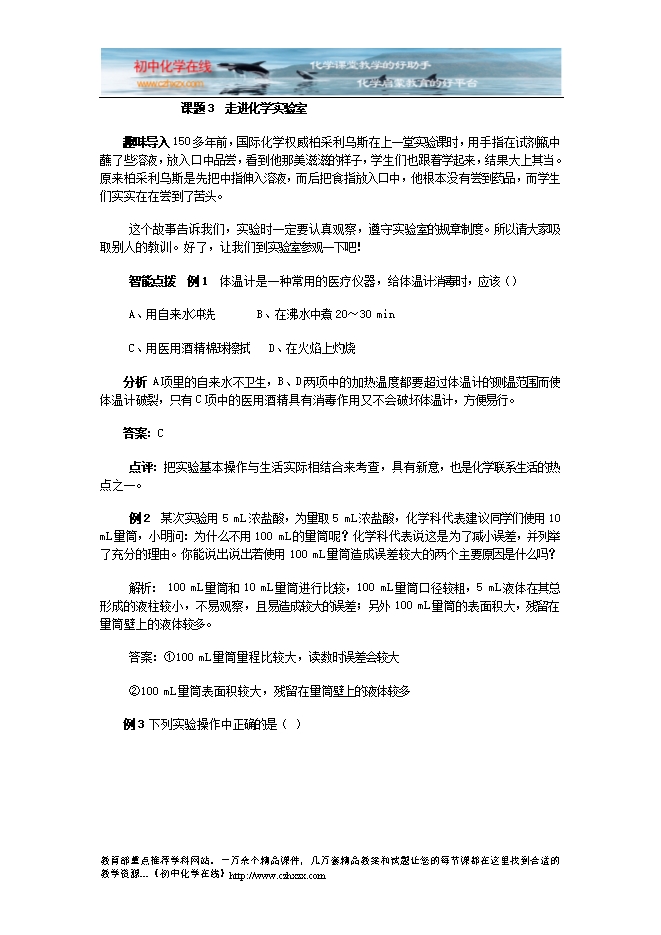人教版《第一单元课题3 走进化学实验室》综合评估检测题及答案