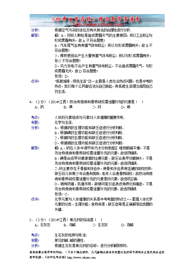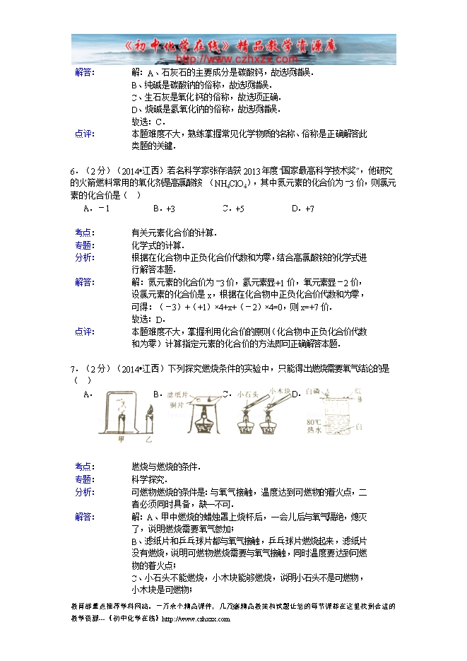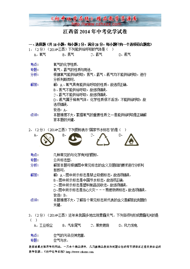 2014年江西省中考化学试题及答案(word版,含解析)