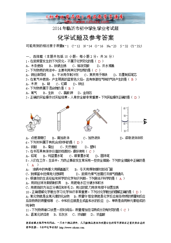 所属专辑: 《2014年各省市中考化学真题》专辑