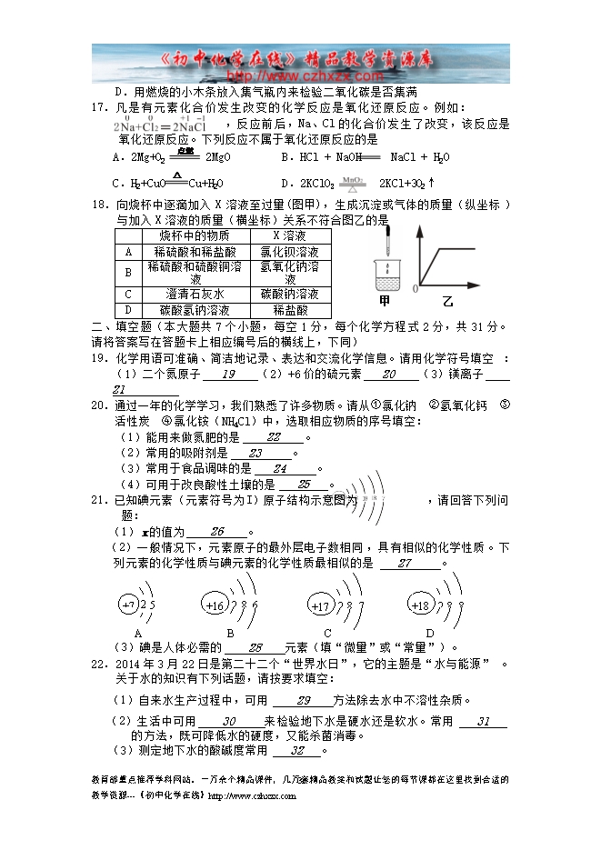 所属专辑: 《2014年各省市中考化学真题》专辑