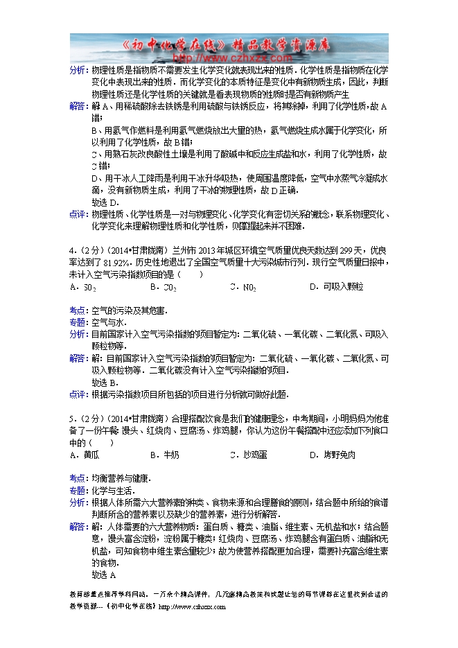 所属专辑: 《2014年各省市中考化学真题》专辑