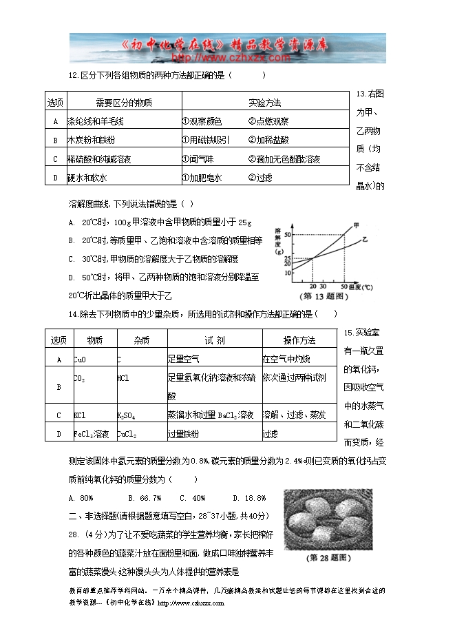 - 上一份试卷:2014年黑龙江省绥化市中考化学试题及答案(扫描版)