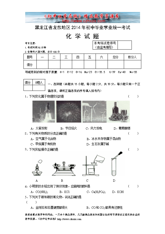 2014年黑龙江省龙东地区中考化学试题(word版)