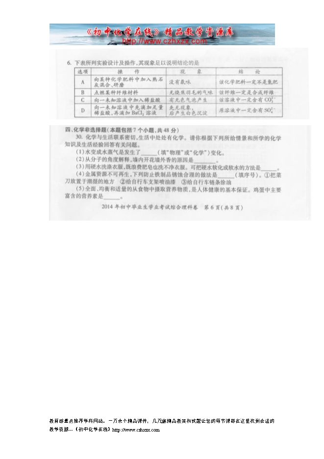 所属专辑: 《2014年各省市中考化学真题》专辑