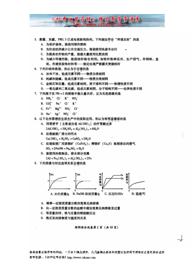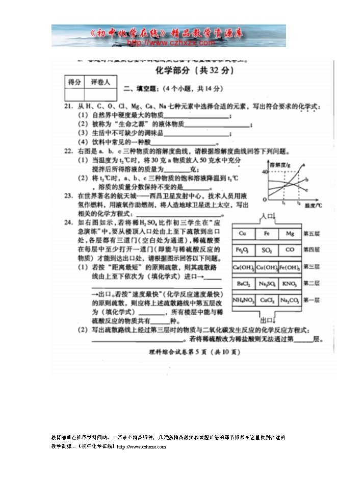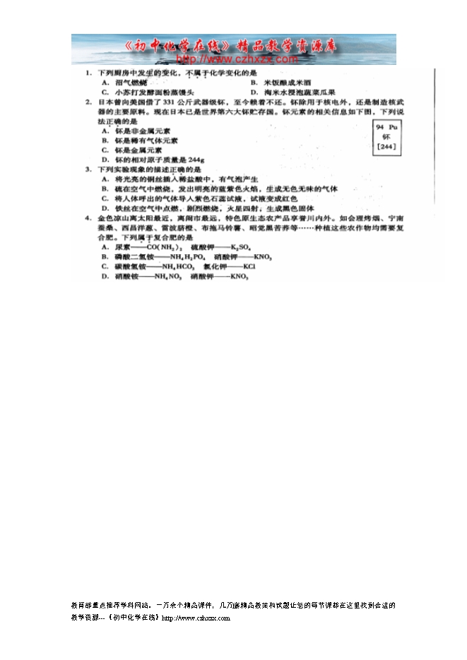 2014年四川省凉山州中考化学试题及答案(扫描版)