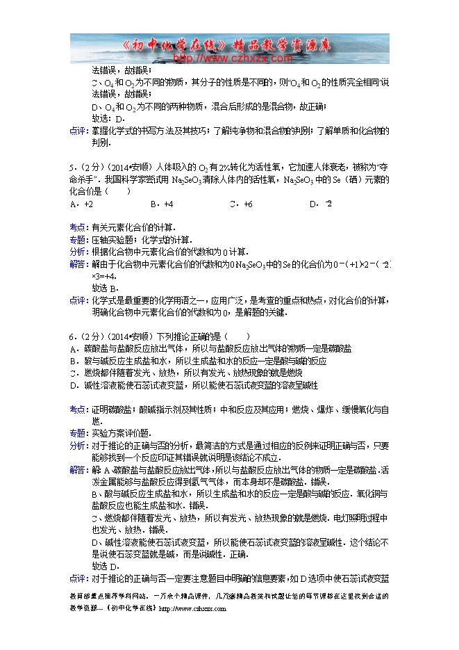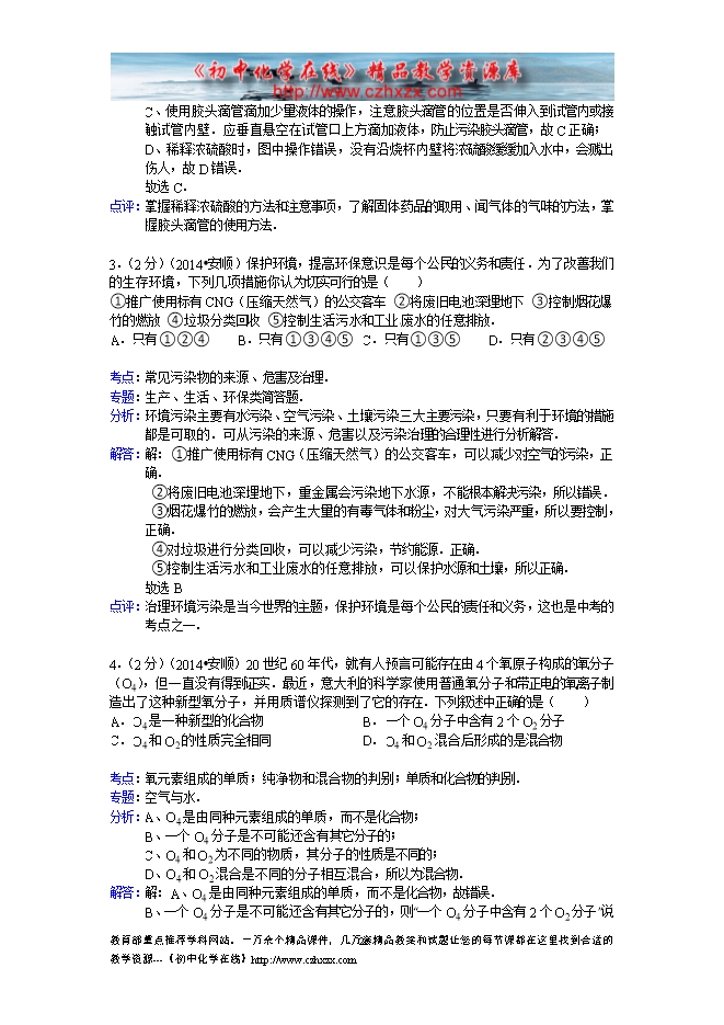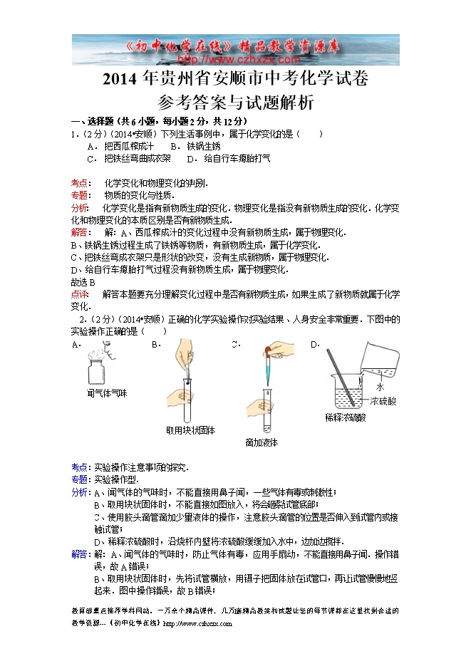 2014年贵州省安顺市中考化学试题及答案(word版.含解析)