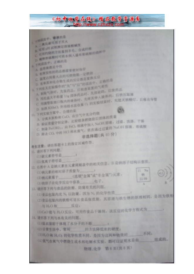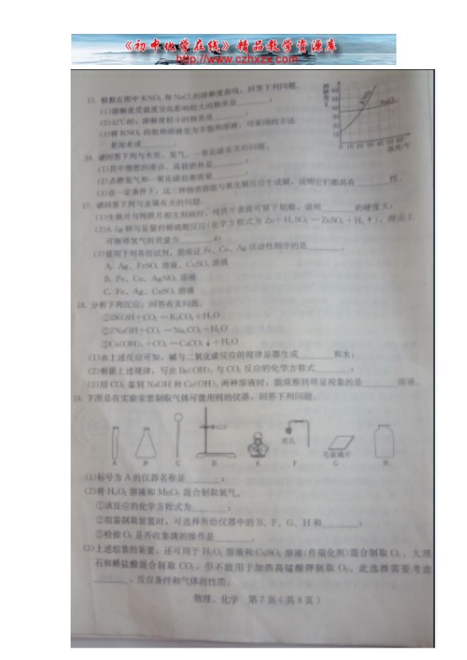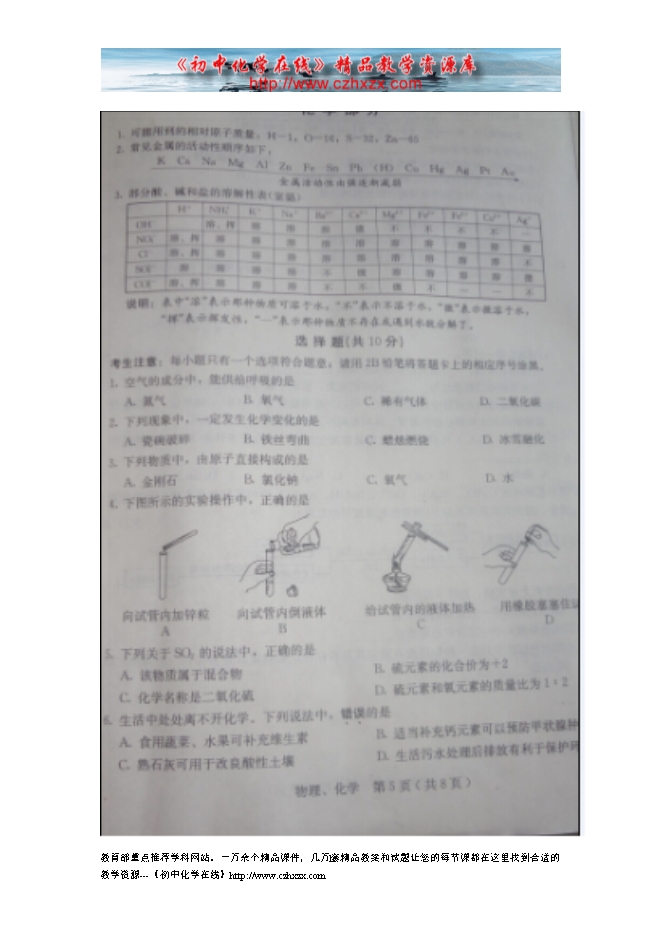 2014年吉林省长春市中考化学试题及答案(扫描版)
