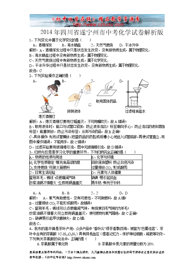 2014年四川省遂宁市中考化学试题及答案(word版.含解析)