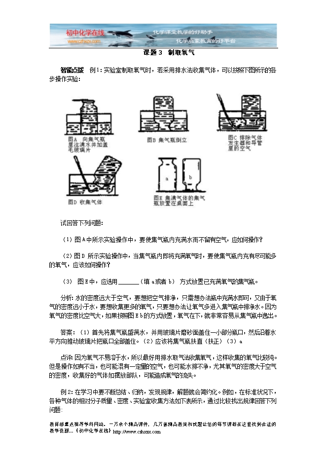 人教版《第二单元课题3 制取氧气》检测题及答案分析