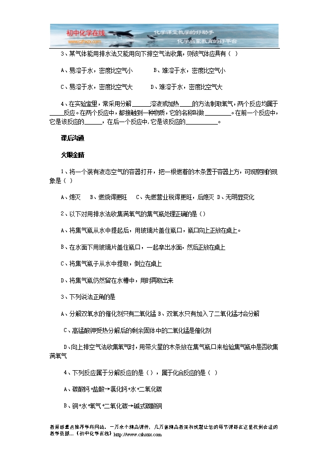 - 上一份试卷:人教版《第二单元课题2 氧气》检测题及答案分析