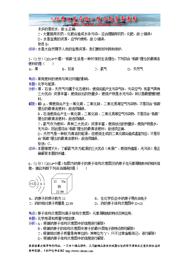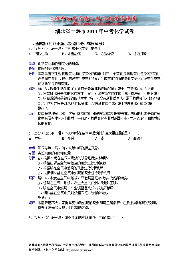2014年湖北省十堰市中考化学试题及答案(word版.含解析)
