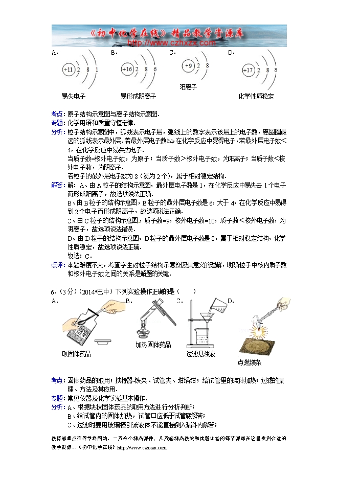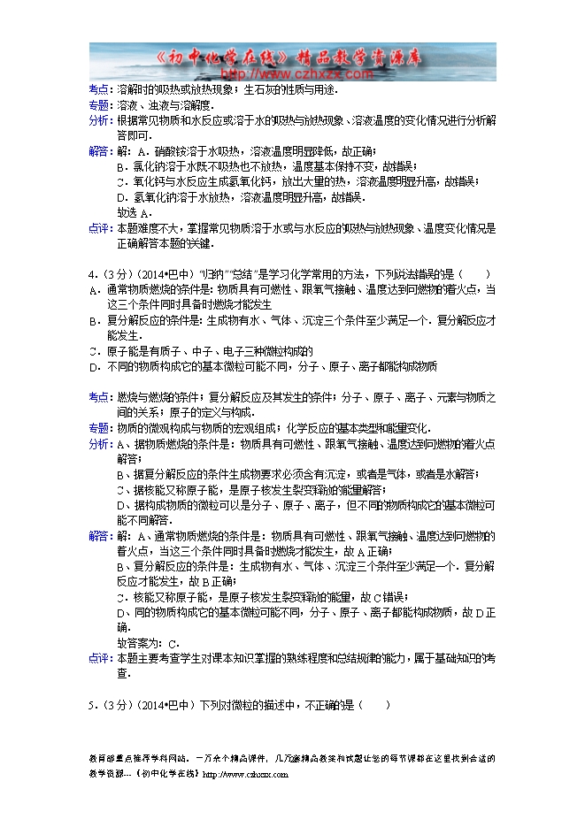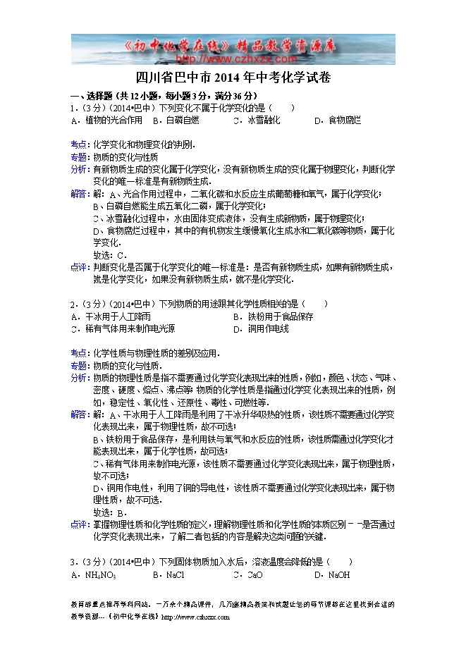 2014年四川省巴中市中考化学试题及答案(word版,含解析)