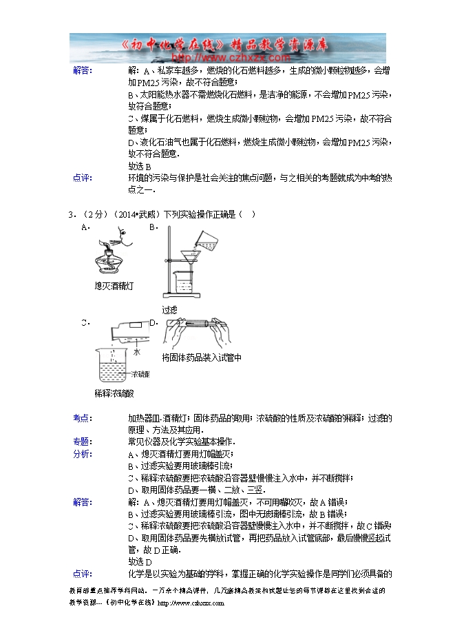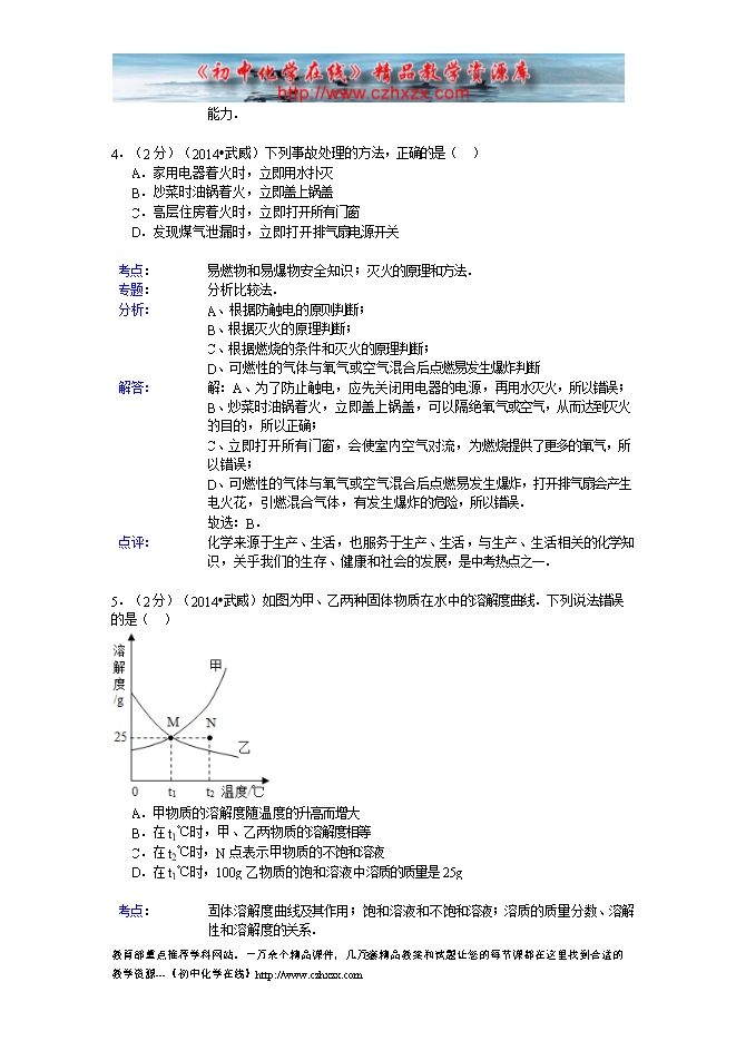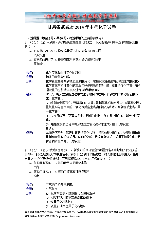 2014年甘肃省武威市中考化学试题及答案(word版,含解析)