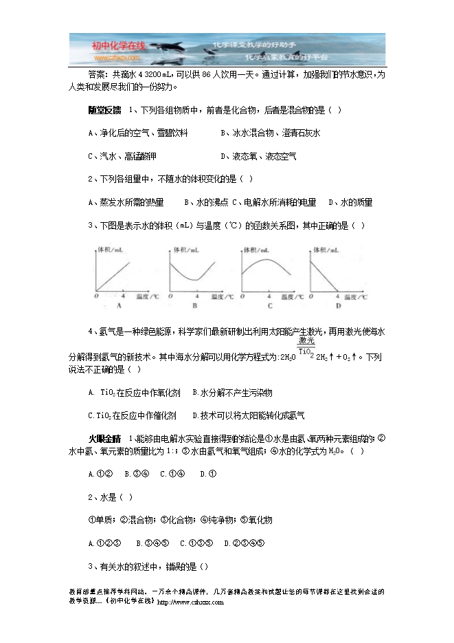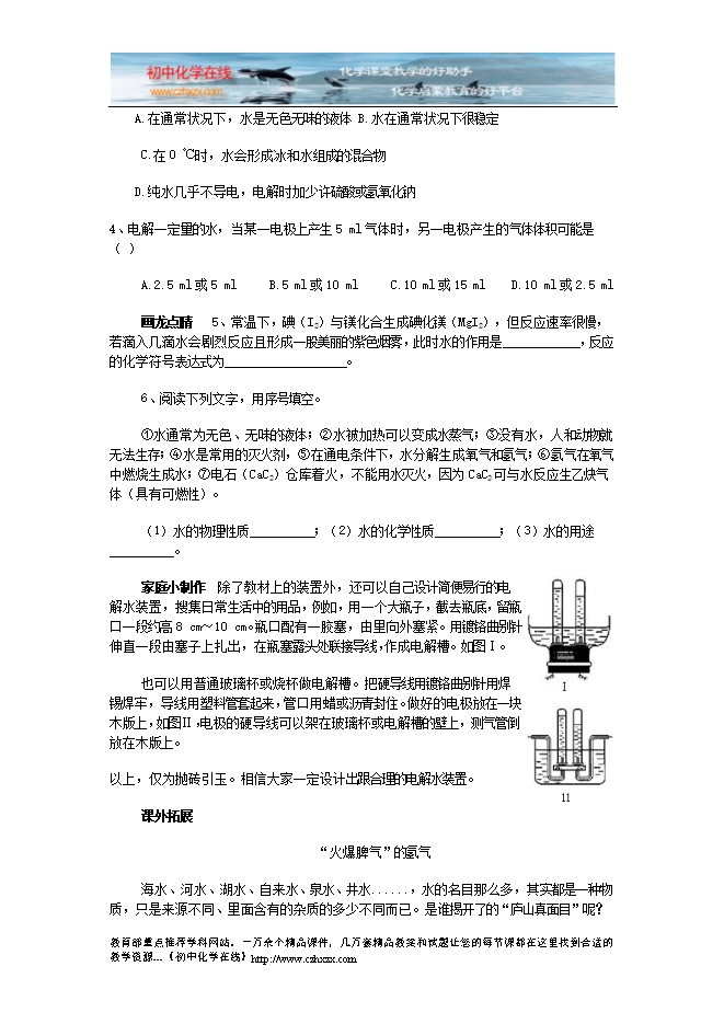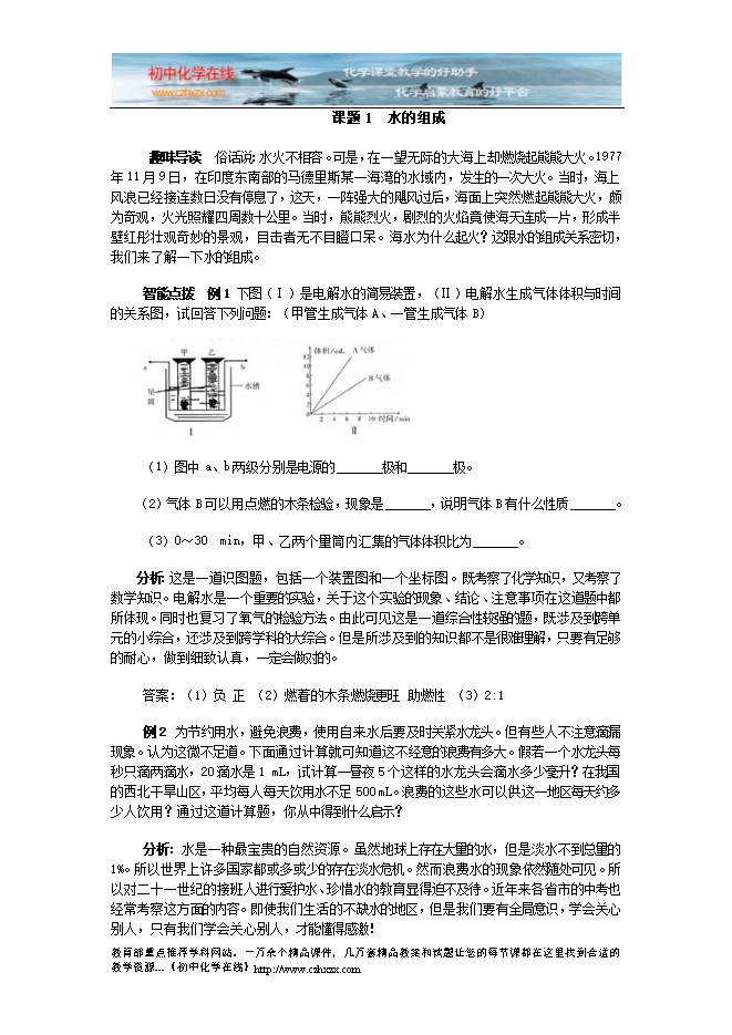 人教版《第四单元课题2 水的组成》检测题及答案分析